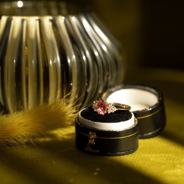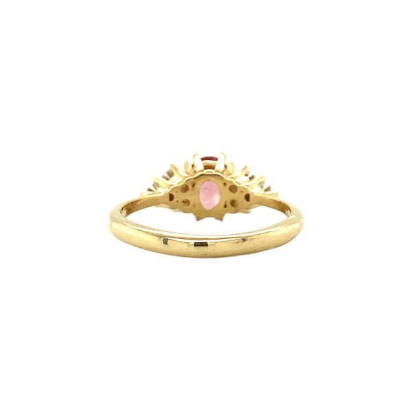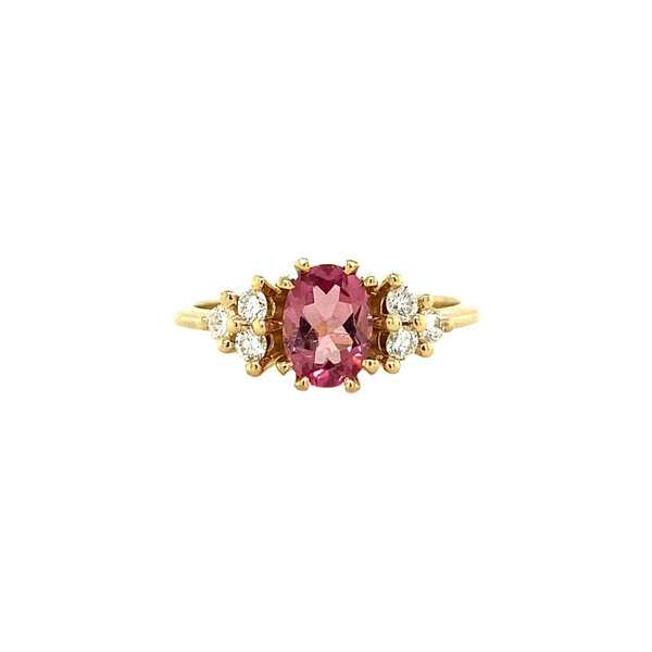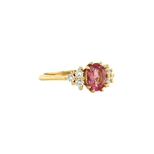 | Stone type: | Pink Tourmaline 7 x 5 mm and Diamond 6x 0.035 ct. brilliant cut G-SI |