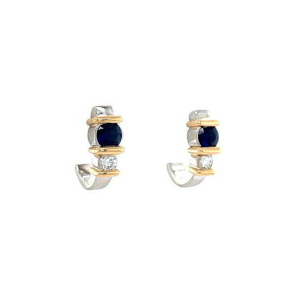 | Stone type: | Natural sapphire 2x 4 mm and Diamond 2x 0.06 ct. F/VVS (0.12 ctw.) |