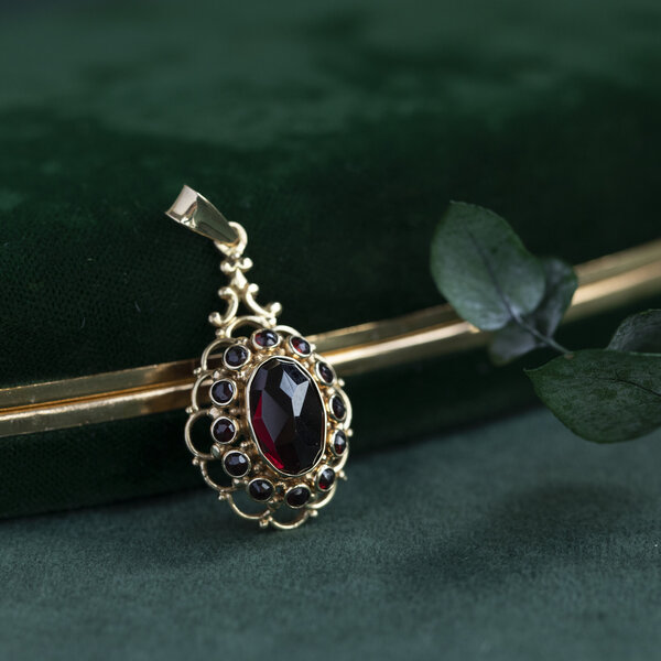 | Stone type: | Garnet 11.6 x 7.7 mm and 12x 2.5 mm |