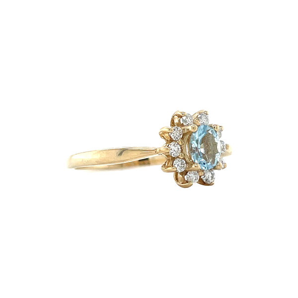 | Stone type: | Aquamarine 5.2 x 4.1 mm and Diamond 0.20 ctw H/SI |