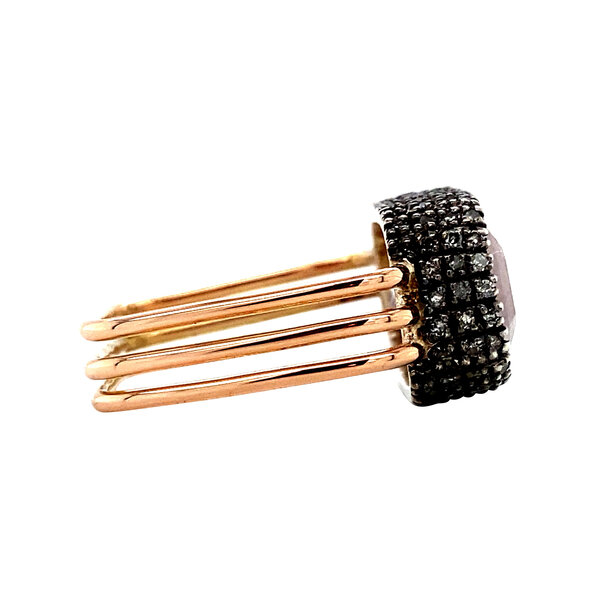 | Stone type: | Rose quartz 9.5 x 13.7 mm and Diamond 0.55 ct. 8-sided cut |