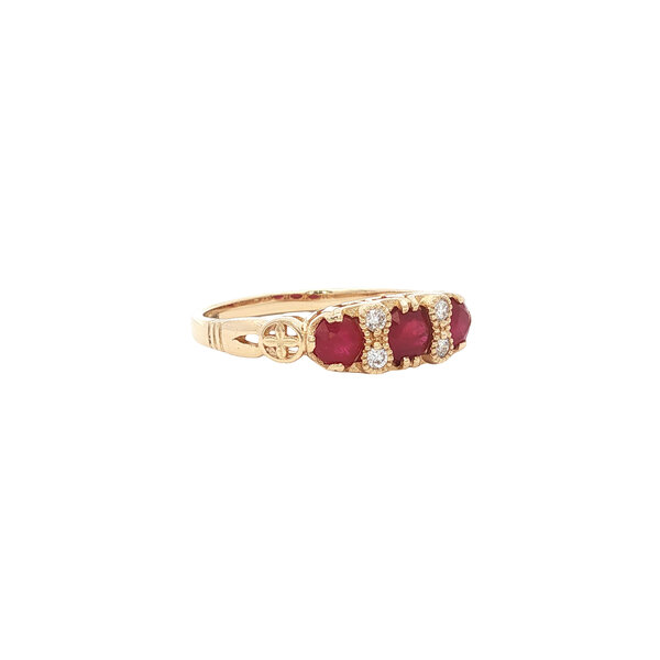 | Stone type: | Ruby 1x 4 mm and 2x 3.5 mm and Diamond 0.07 ctw. (4x) |