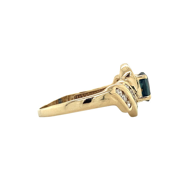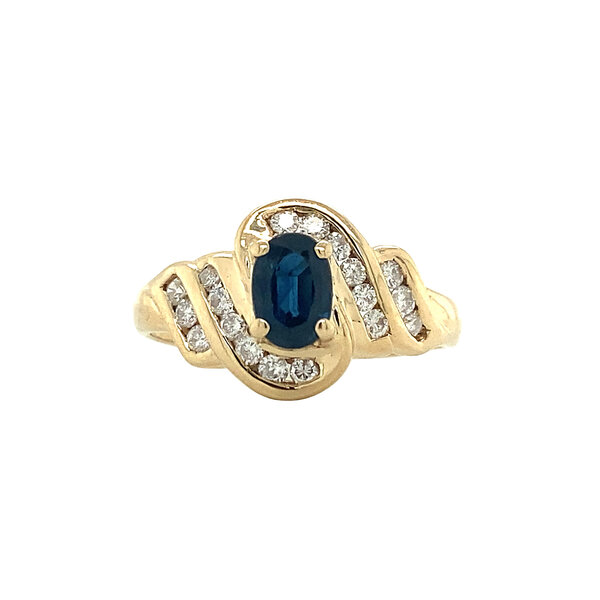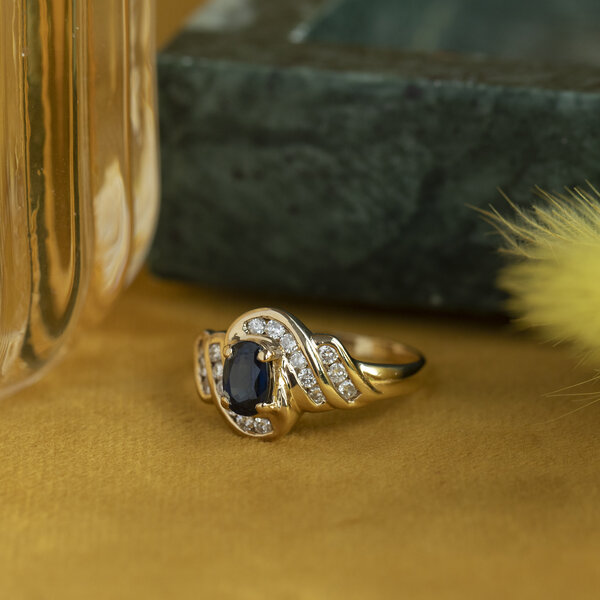 | Stone type: | Natural sapphire 6.1 x 4.2 mm and diamond 6x 0.02ct. and 12x 0.015ct. brilliant cut H-P1 |