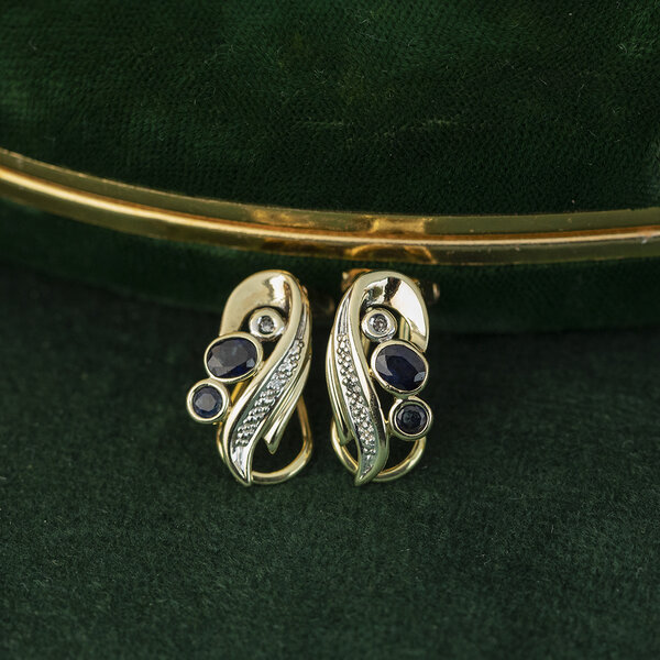 | Stone type: | Synthetic sapphire 2x 4.3 x 3.4 mm and 2x 2.5 mm and Diamond 4x 0.005 ct. 8-sided cut |