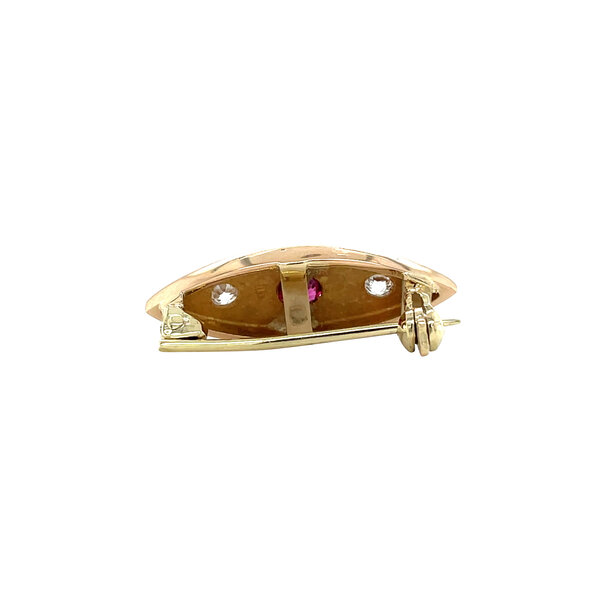 | Stone type: | Natural ruby 3.8 mm and Diamond 2x 0.07 ct. F/VS old mine cut |