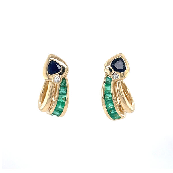 Stone type: | Natural emeralds 12x 1.6 x 1.5 mm - 2.3 x 2 mm, Sapphires 2x 4.2 x 4.2 mm and Diamonds 2x 0.025 ct. H/SI (0.05 ctw.) |