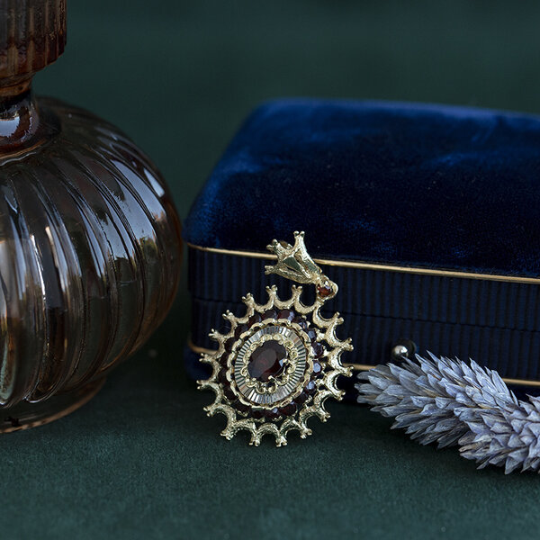 | Stone type: | Garnet 1x 7 x 5.2 mm, 18x 2.8 mm and 1x 2.5 mm |