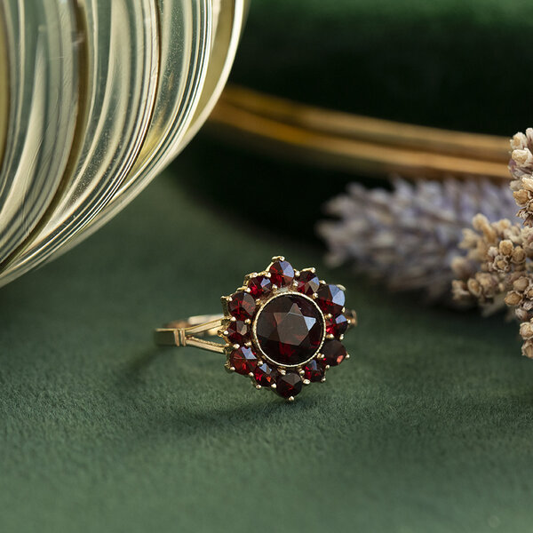 | Stone type: | Garnet 1x 6.6 mm and 12x 2.2 x 2.9 mm |