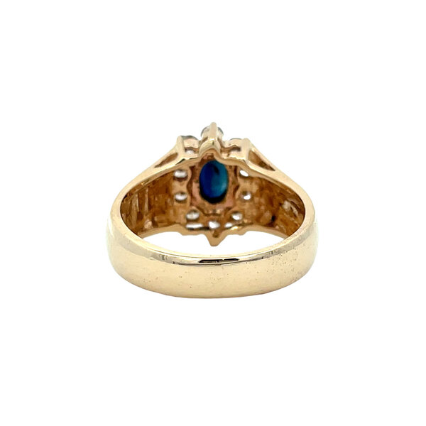 | Stone type: | Natural sapphire 5.8 x 3.8 mm and Diamond 10x 0.045 ct. H/VS-SI (0.45 ctw.) |