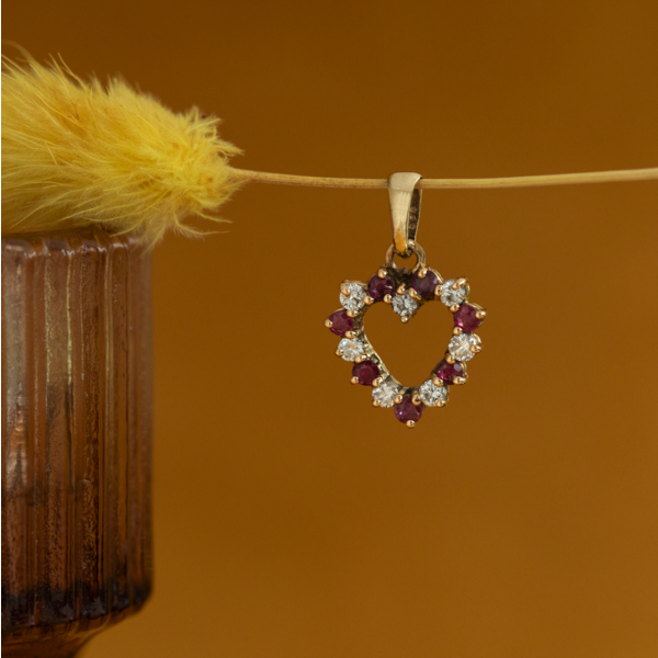 | Stone type: | Natural ruby 7x 2.2 mm and Diamond 7x 0.03 ct. G/SI |