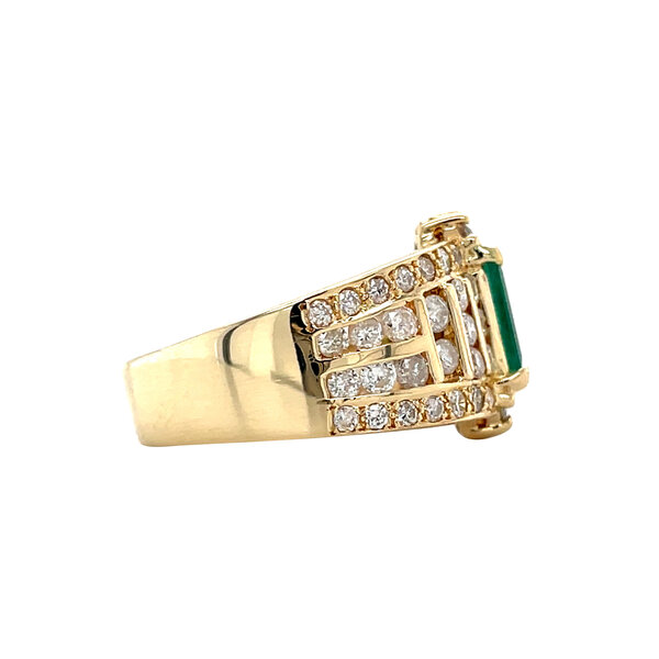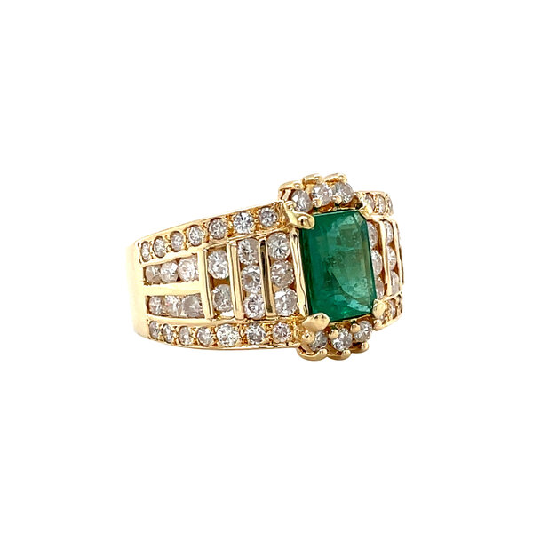 | Stone type: | Naturally oiled emerald 7.5 x 5 mm and Diamond 28x 0.01 ct., 6x 0.02 ct. and 28x 0.03 ct. G/SI2-I1 (1.24 ctw.) |