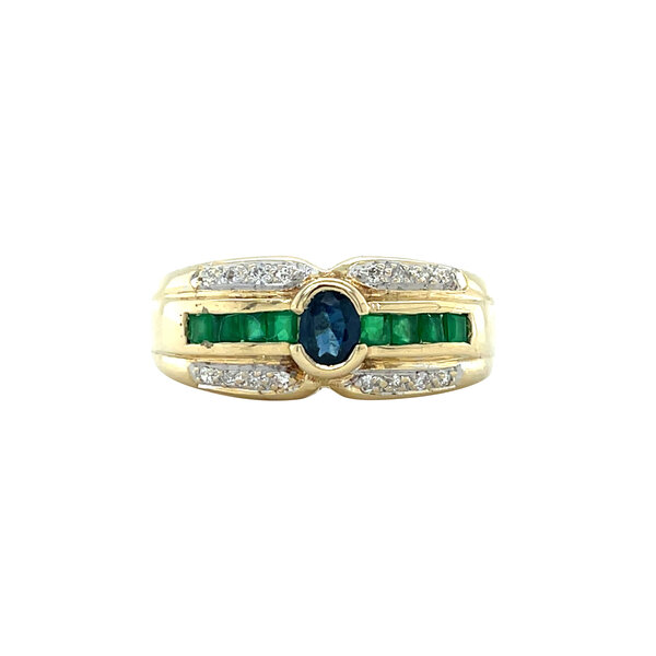 Stone type: | Synthetic sapphire 3.8 x 3.2 mm, Synthetic emerald 8x 1.8 x 1.8 mm and Diamond 16x 0.0025 ct. G/SI 8sided cut (0.04 ctw.) |