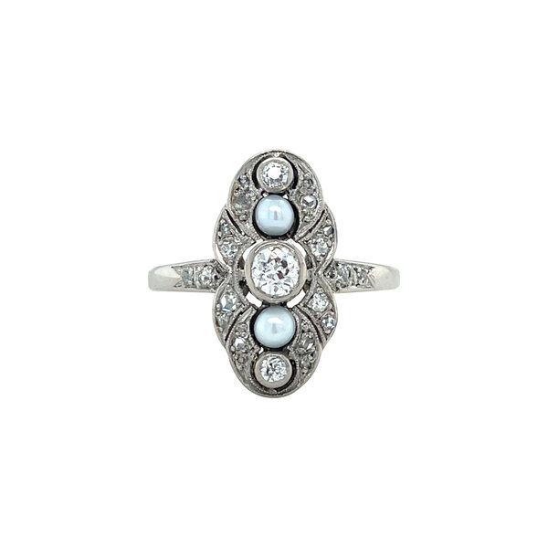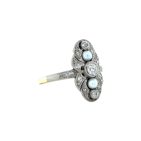 | Stone type: | Pearl 2x 2.6 mm, Rose-cut diamond 8x 1.2 - 1.25 mm G-SI and 10x 0.8 - 1 mm G-SI and Diamond 1x 0.15 ct. F/VS2 old euro cut, 2x 0.025 ct. F/VS2 old euro cut and 2x 0.01 ct. F/VS old euro cut (0.22 ctw.) |