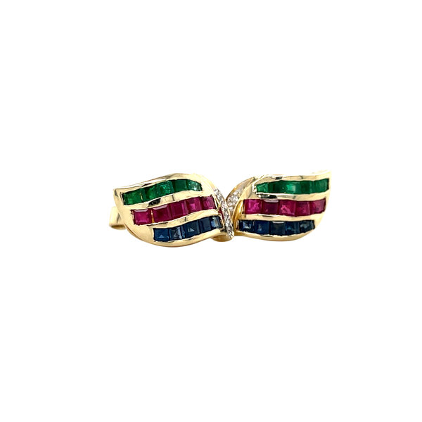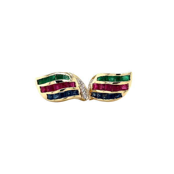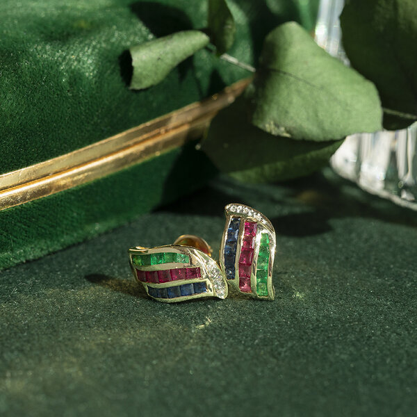 | Stone type: | Natural ruby 10x 1.8 x 2 mm, Natural emerald 10x 1.8 x 2 mm, Natural sapphire 10x 1.8 x 2 mm and Diamond 6x 0.0025 ct. G/SI 8-sided cut |