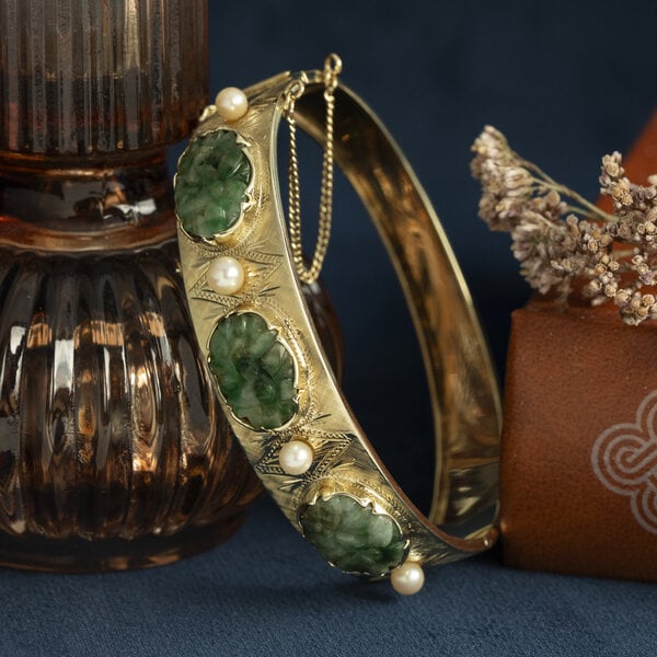 | Stone type: | Jade 1x 12.1 x 15.8 mm and 2x 12.2 x 15.6 mm and Pearl 1x 4.9 mm, 1x 4.4 mm and 2x 4.3 mm |