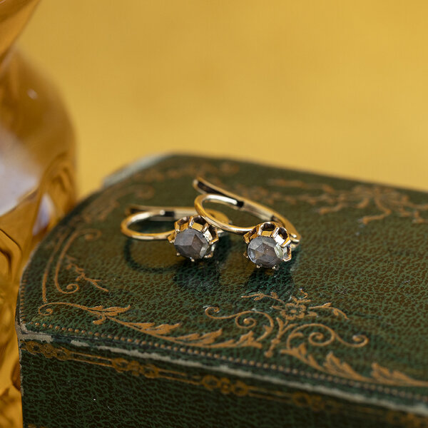 | Stone type: | Rose diamond 1x 4.05 x 3.7 mm and 1x 3.47 x 3.91 mm M-N SI2 |