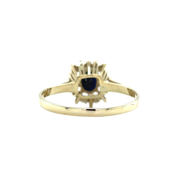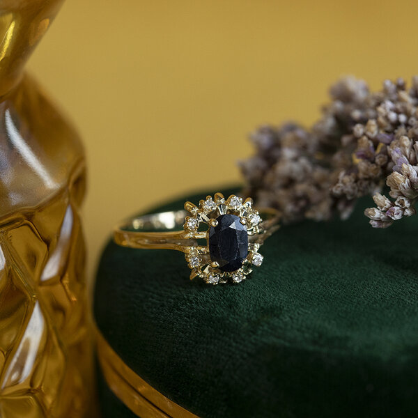 Stone type: | Synthetic sapphire 6.8 x 4.8 mm and Diamond 8x 0.005 ct. H/SI 8-sided cut |