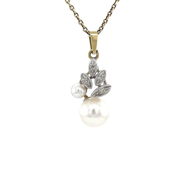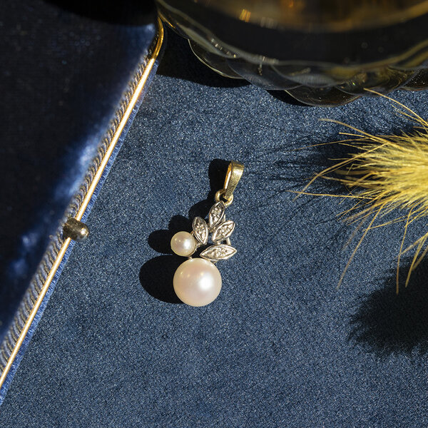 | Stone type: | Pearl 1x 7.3 mm and 1x 3.7 mm and Diamond 4x 0.005 ct. G/SI 8-sided cut (0.02 ctw.) |