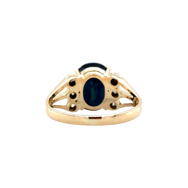 | Stone type: | Doublet of sapphire and synthetic sapphire 10.4 x 7.5 mm and Diamond 6x 0.03 ct. RBC L/VS |