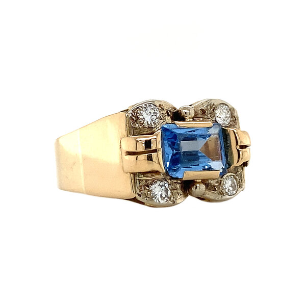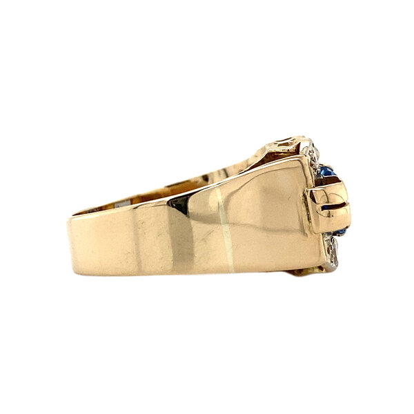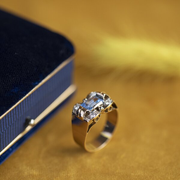 Gold ring with diamond and blue spinel 14 krt