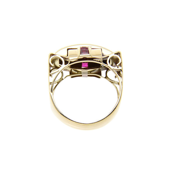 Gold ring with rose diamond and ruby 14 krt