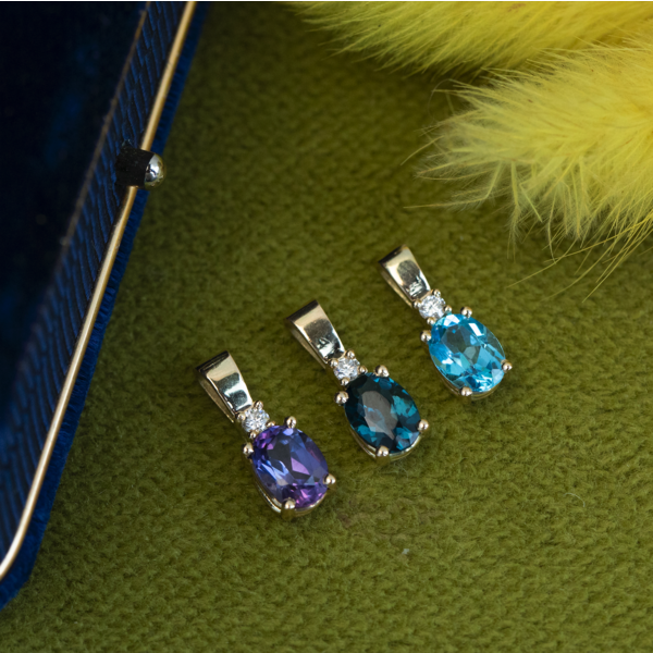 Stone type: Topaz (london) 7 x 5 mm and Diamond 0.035 ct. brilliant cut G-SI