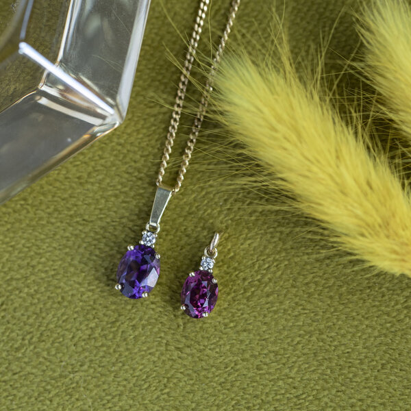 | Stone type: | Amethyst 9 x 7 mm and Diamond 2x 0.035 ct. brilliant cut G-SI |