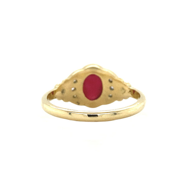Stone type: Ruby (treated) 8 x 6 mm and Diamond 6x 0.02 ct. brilliant-cut G-SI