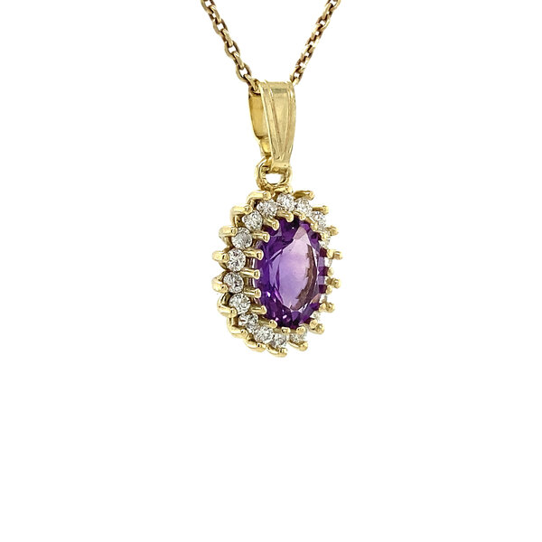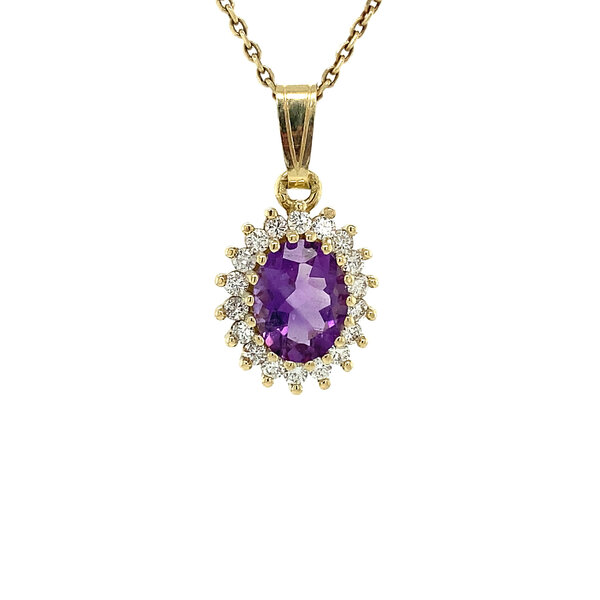 | Stone type: | Amethyst 9 x 7 mm and Diamond 2x 0.035 ct. brilliant cut G-SI |