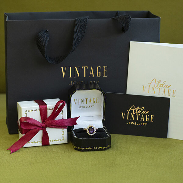 Stone type: Amethyst 9x7 mm and Diamond 18x 0.02 ct. brilliant-cut G-SI