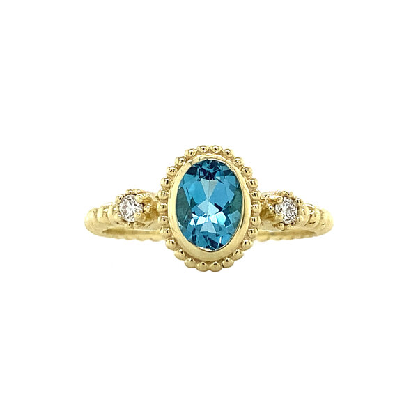 | Stone type: | Swiss Topaz 7 x 5 mm and Diamond 2x 0.035 ct. brilliant cut G-SI |