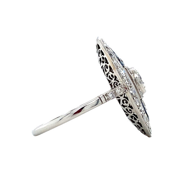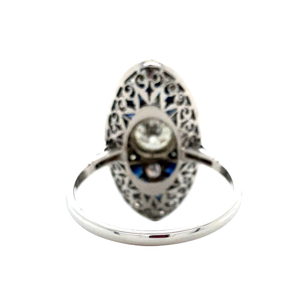 | Stone type: | Synthetic sapphire 6x 1.6 x 1.6 mm and Diamond 1x 0.82 ct. RBC L/SI1, 6x 0.075 ct., 2x 0.01 ct., 2x 0.025 ct. and 24x 0.02 ct. 8-sided cut |