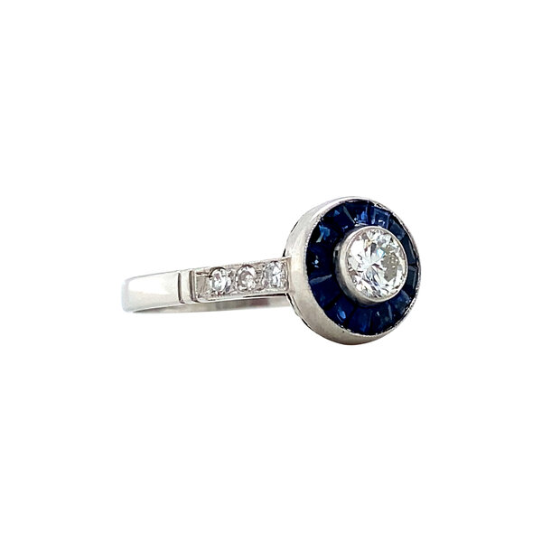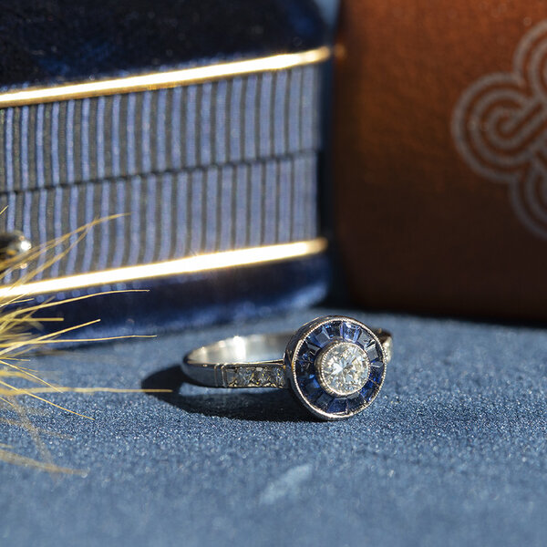 Stone type: | Natural sapphire 13x 2 x 1.8 mm and Diamond 6x 0.015 ct. G/SI 8-sided cut and 1x 0.30 ct. G/VS2 |