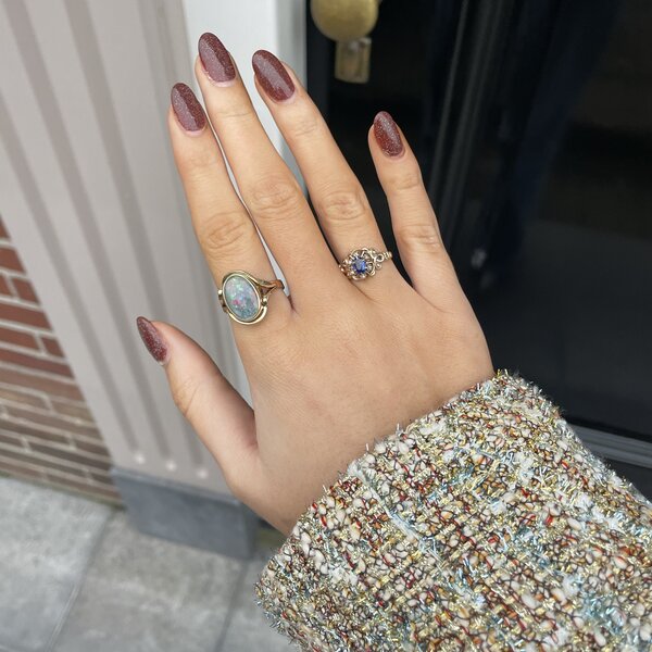 Stone type: | Garnet and glass doublet 5.2 x 3.8 mm and Rose diamond 6x 1 mm G/SI |