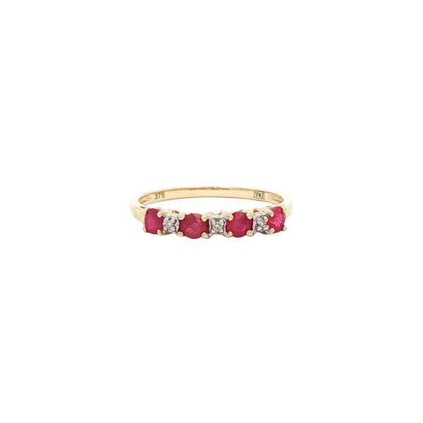 | Stone type: | Ruby 4x 2.7 mm and Diamond 3x 0.005 ct. (0.015 ctw.) |