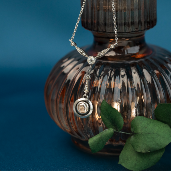 | Stone type: | Diamond 1x 0.20 ct. old euro cut and Rose diamond 1x 5.25 mm N/I1, 4x 1.4 mm and 6x 1 mm G/SI2-I1 |