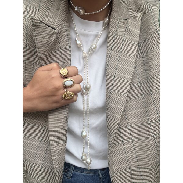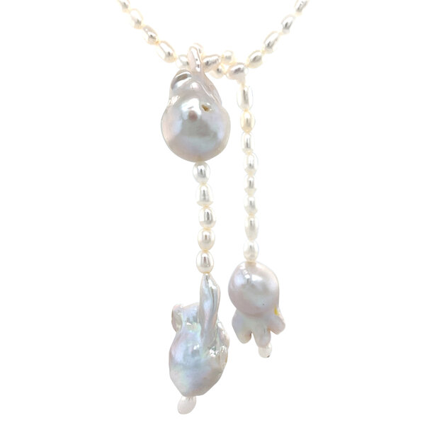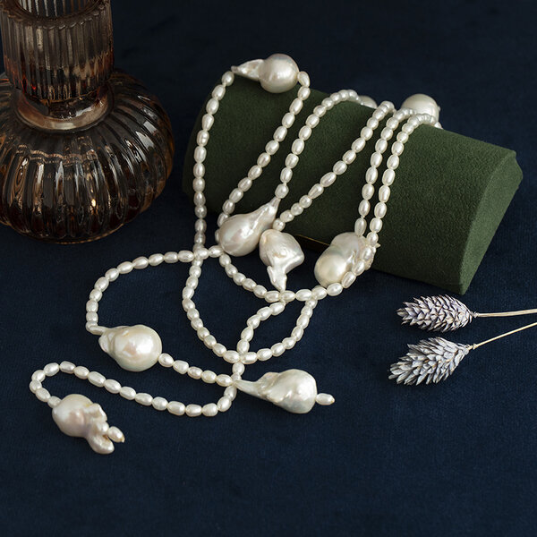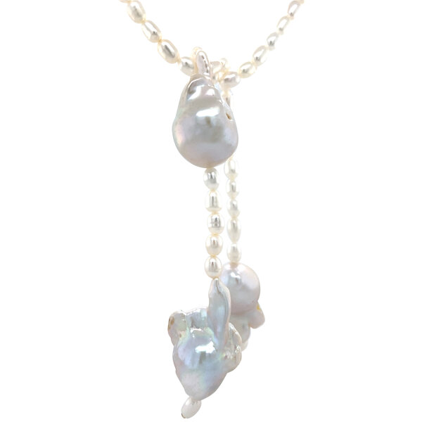 | Stone type: | Pearl 3.9 x 5.5 mm and Baroque pearl 11x +/- 22.2 x 15.3 mm |