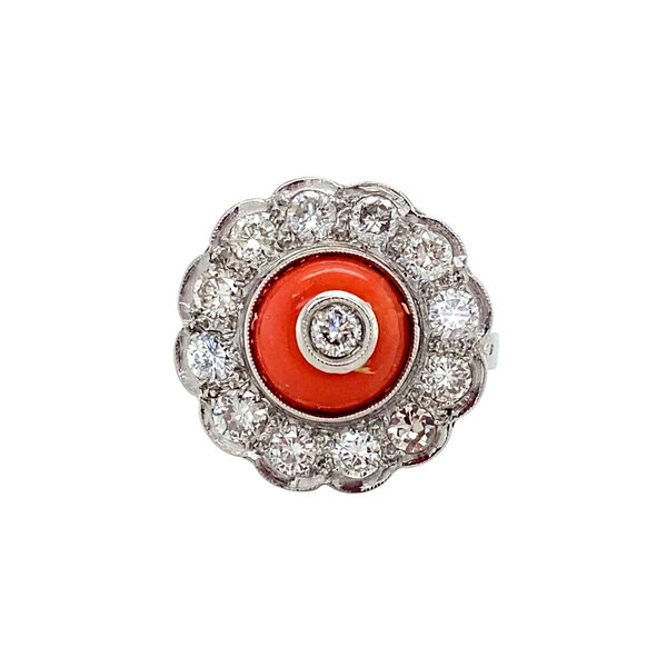 | Stone type: | Blood coral 8.5 mm and Diamond 1x 0.10 ct., 12x 0.08 ct. and 4x 0.02 ct. J-K SI2 (1.14 ctw.) |
