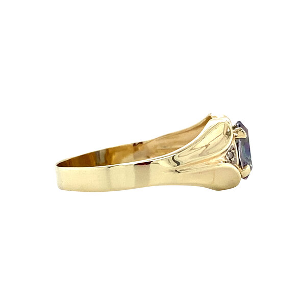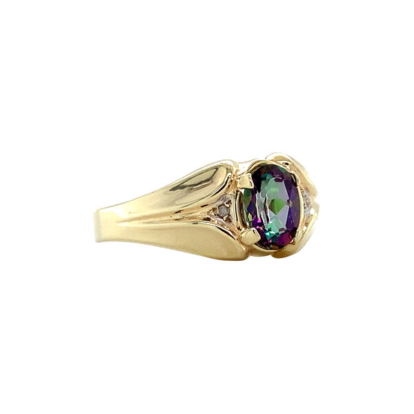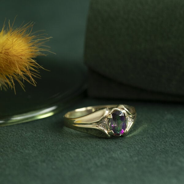| Stone type: | Mystic topaz 7 x 5.1 mm and Diamond 2x 0.005 ct. 8-sided cut H/I |