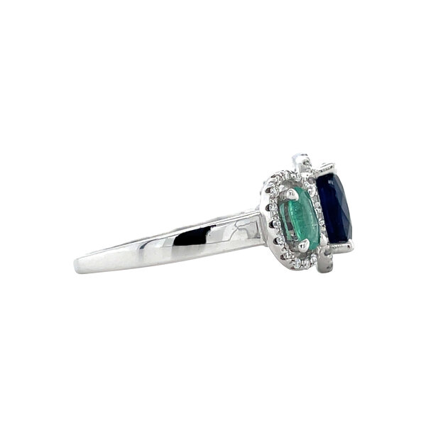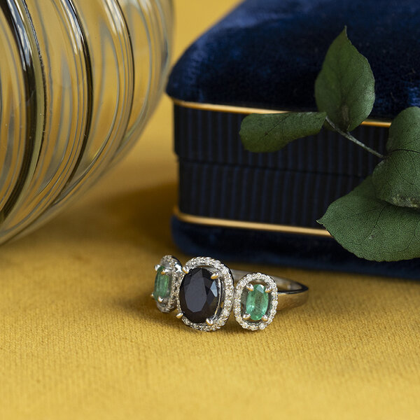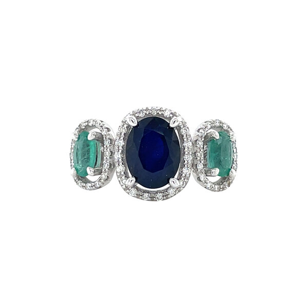 | Stone type: | Sapphire 8.1 x 6.1 mm, Emerald 2x 5.2 x 3.2 mm and Diamond 0.223 ctw. H/SI |
