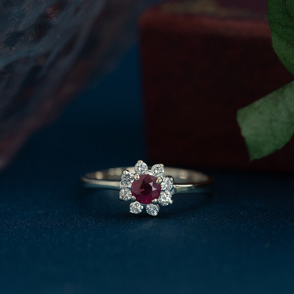 | Stone type: | Natural ruby 3.7 mm and Diamond 8x 0.02 ct. G/SI |