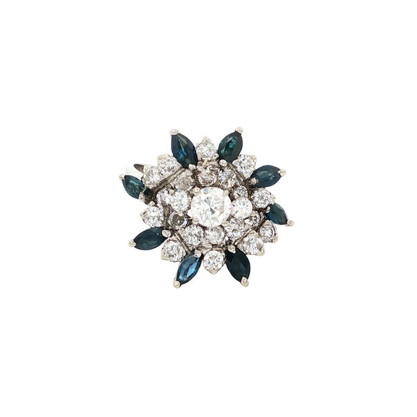| Stone type: | Natural sapphire 8x 4.4 x 2.3 mm and Diamond 1x 0.25 ct. I/SI, 18x 0.045 ct. and 4x 0.04 ct. G/SI (1.26 ctw) |
