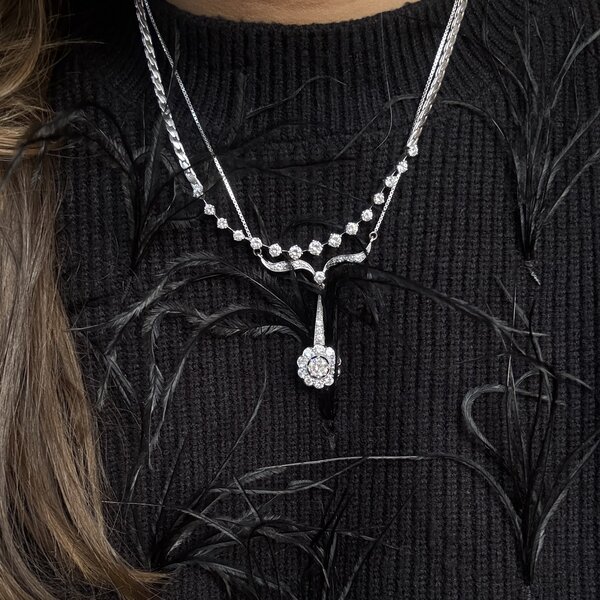 | Stone type: | Diamond 1x 0.25 ct., 2x 0.20 ct., 2x 0.17 ct., 2x 0.15 ct., 2x 0.12 ct., 4x 0.11 ct. and 2x 0.10 ct. G-VSI brilliant cut (2.17 ctw.) |