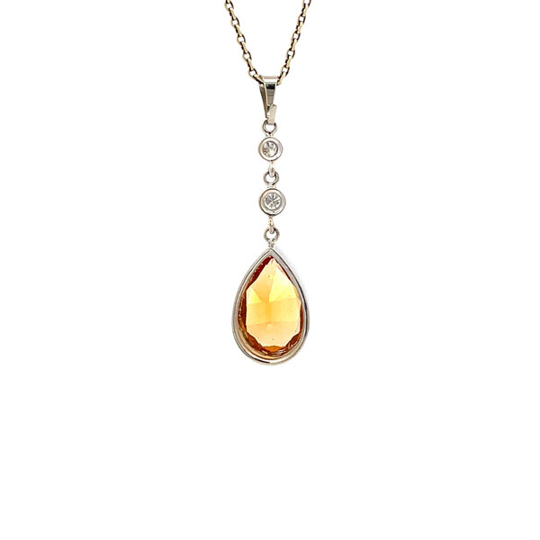 | Stone type: | Citrine 12.3 x 8.4 mm and Diamond 1x 0.045 ct. and 1x 0.04 ct. G/SI (0.085 ctw.) |
