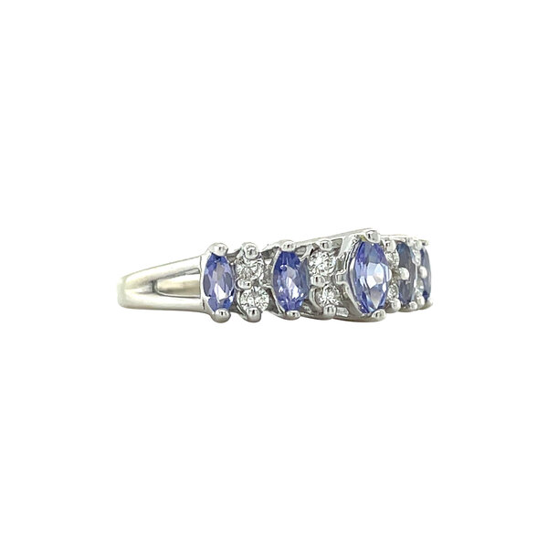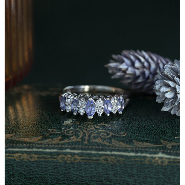| Stone type: | Tanzanite 1x 4.6 x 2.5 mm and 4x 4 x 2.2 mm and Diamond 8x 0.02 ct. G/VS (0.16 ctw.) |