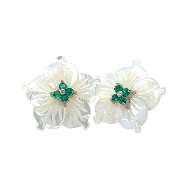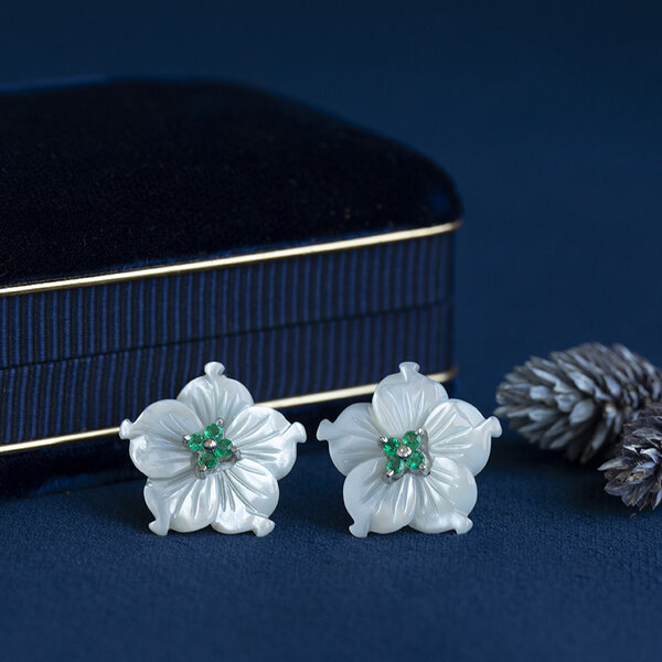 Stone type: | Mother-of-pearl 2x 19.6 x 19.5 mm and Natural emerald 8x 2 mm |