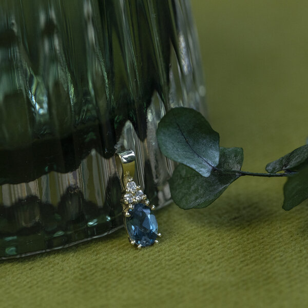 Steensoort: | London topaas 7 x 5 en Diamant 3x 0.035 ct. briljant geslepen G-SI |