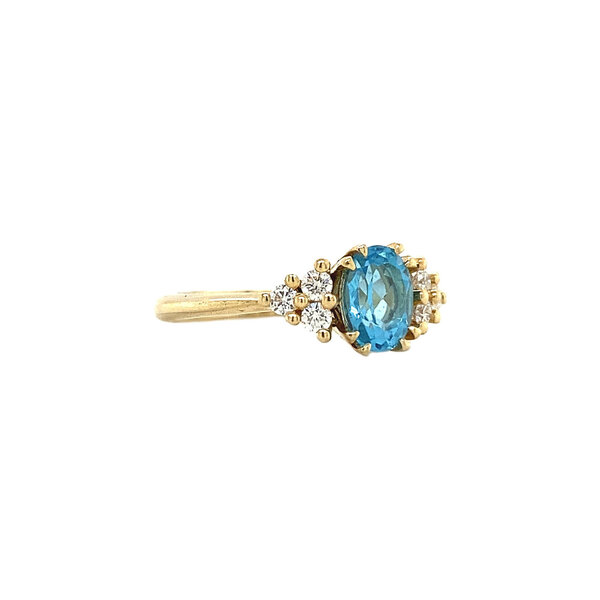 | Steensoort: | Swiss Topaas 7 x 5 mm en Diamant 6x 0.035 ct. briljant geslepen G-SI |