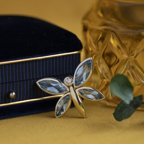 Steensoort: | Synthetische blauwe Spinel 2x 12.7 x 5.5 mm en Zirkonia 2.8 mm |