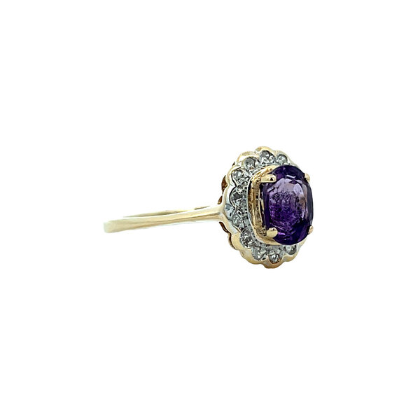 | Steensoort: | Amethist 7.1 x 5 mm en Diamant 14x 0.0025 ct. I/I2 8kant geslepen (0.035 ctw.) |